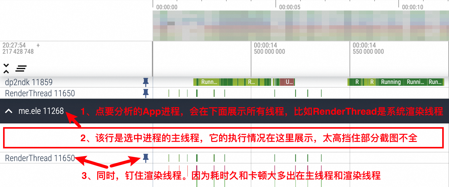 、渲染线程、主线程等就会同时钉在顶部,方便我们做对比确认信息。