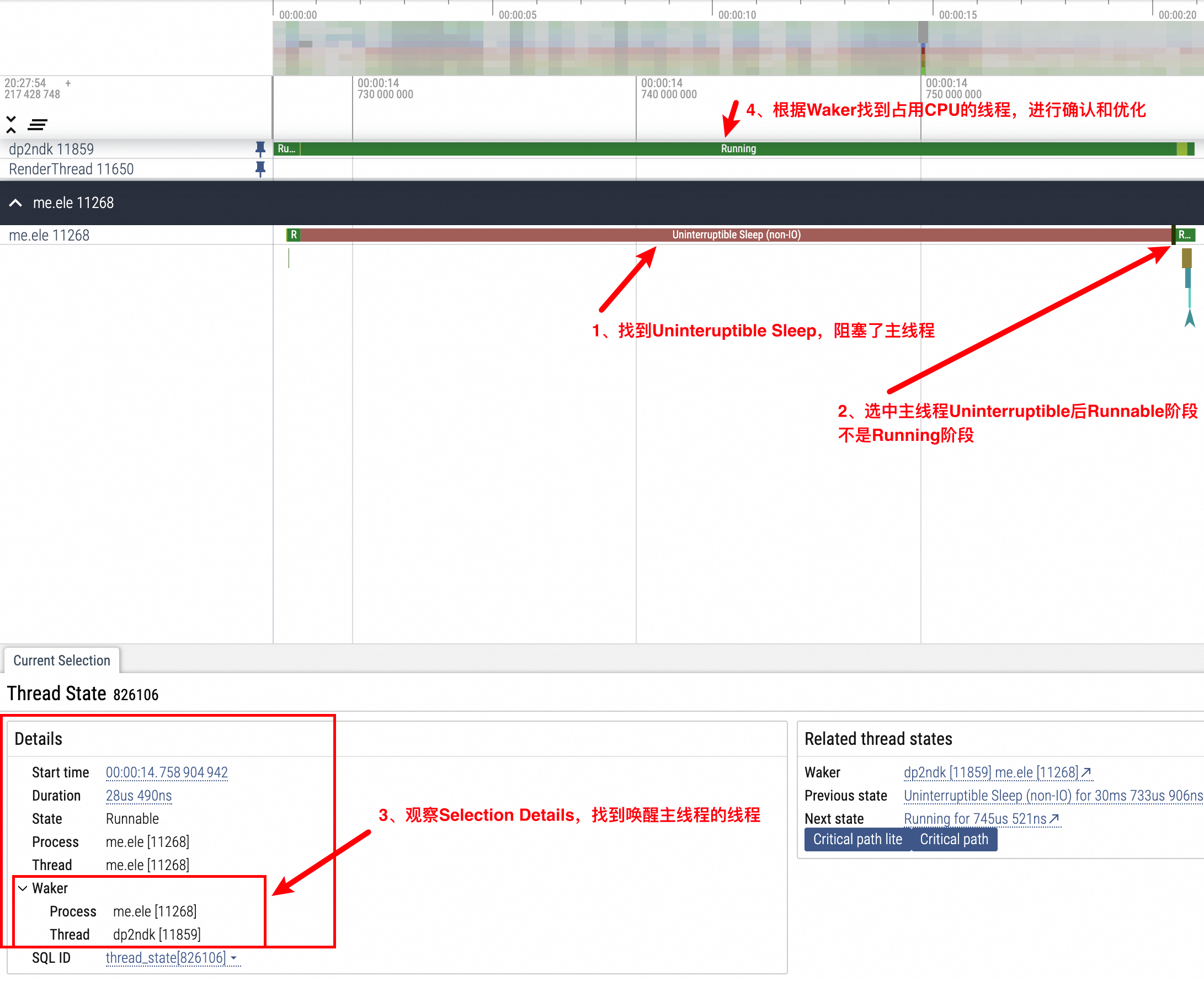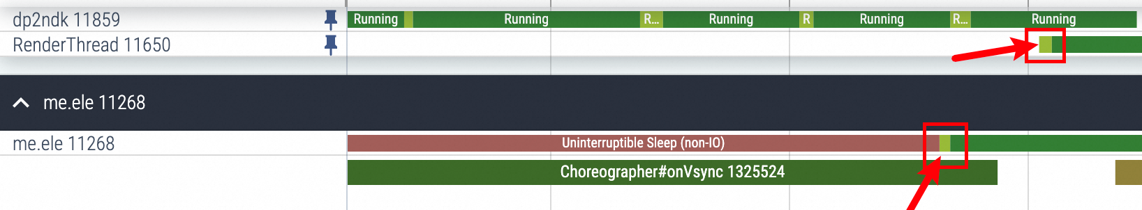 状态,这个 case 中比较明显的棕色段就是Uninterruptible Sleep
