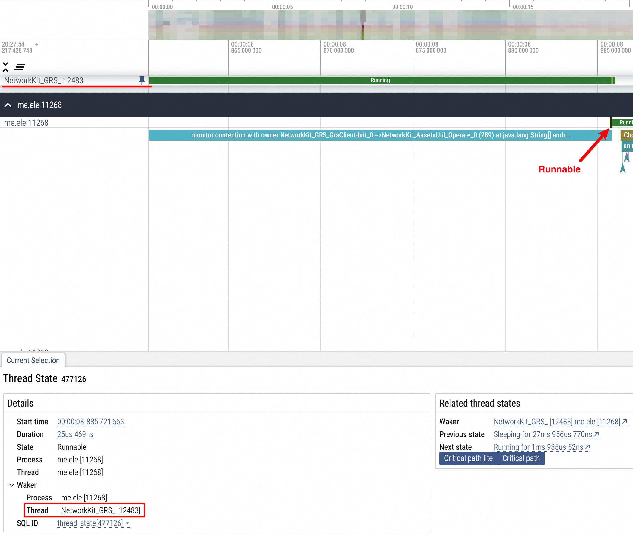 的 Trace 段,它会阻塞主线程或者渲染线程,点击主线程或者渲染线程后面的Runnable