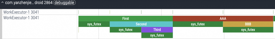 的类型比较多,都属于锁操作,在 App 启动过程中或者页面操作过程中非常常见,如图十七所示,发现某个 Trace 耗时较长时,单独选中该段 Trace,在 Slices 中会列出子 Trace 段列表,可以更好的看出耗时 Trace。