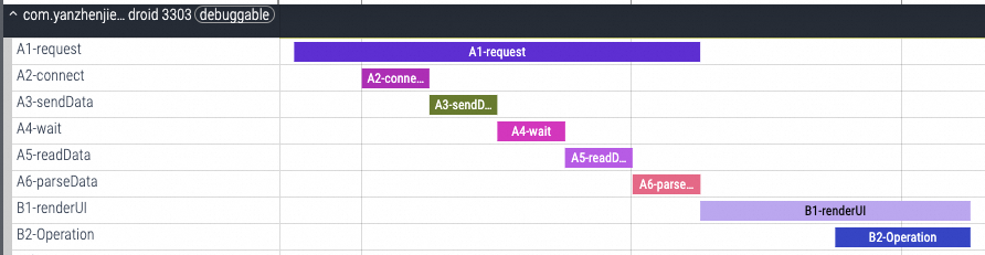 观察 Slice Details 后会很一目了然的看到该 Trace 的耗时: